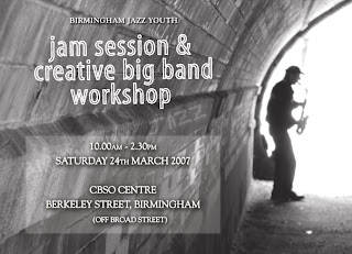 Birmingham Jazz are running a jam session for young musicians at the CBSO centre on Saturday 24th March. It starts at 10.00am and goes on until about 12ish at which time we will break for lunch. From about 12.30pm we will run a creative big band session. I am writing a graphic score that will be part devised, part improvised and part directed. This will be open to musicians of all ages and abilities.
